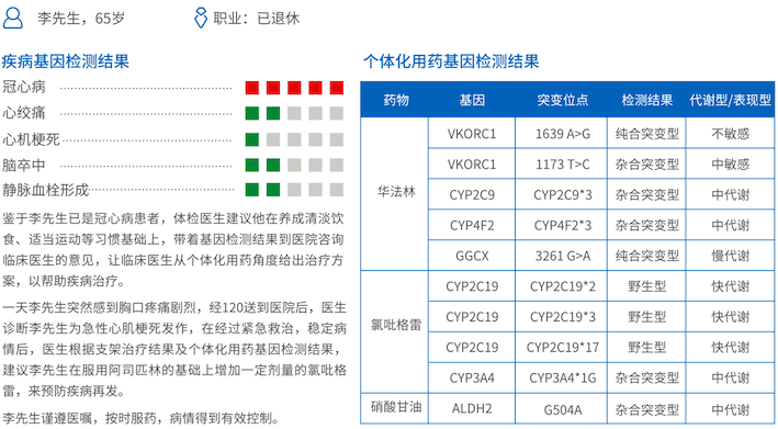 通過對華法林、氯吡格雷、硝酸甘油三種常見血栓治療藥物相關(guān)基因進行檢測,提高藥物的治療效果,避免藥物不良反應(yīng),為血栓性疾病個性化用藥提供指導。