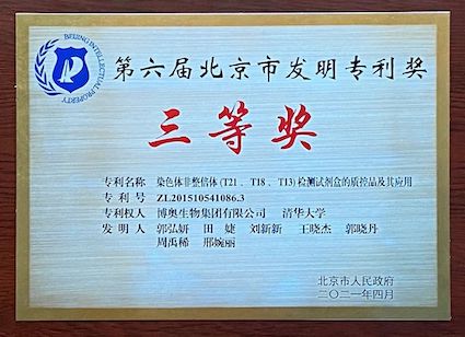 喜訊 | 博奧生物“染色體非整倍體(T21、T18、T13)檢測試劑盒的質(zhì)控品及其應(yīng)用”榮獲第六屆北京市發(fā)明專利獎三等獎
