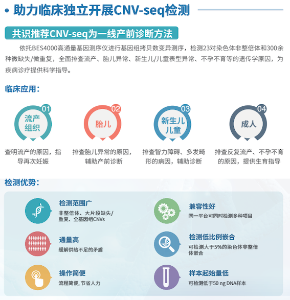 王教授詳細介紹了博奧基于BES4000平臺的CNV-seq技術(shù),指出在產(chǎn)前診斷領域引入STR(short tandem repeat,短片段重復序列)分析的CNV-seq(+)技術(shù),不僅可有效排除母源污染,還可高效檢出三倍體和UPD,提高陽性檢出率。2019年4月發(fā)布的《低深度全基因組測序技術(shù)在產(chǎn)前診斷中的應用專家共識》指出,具備條件的產(chǎn)前診斷機構(gòu)可將CNV-seq作為一線產(chǎn)前診斷技術(shù)應用于臨床。CNV-seq技術(shù)不僅能輔助臨床判斷胎兒是否存在染色體異常,還能提高復發(fā)性流產(chǎn)夫婦染色體異常檢出率。