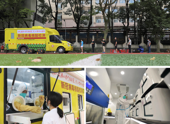 在武漢全員核酸檢測(cè)過程中,有這樣一抹亮色,馳騁在武漢抗疫前線,它就是博奧晶典新冠病毒核酸檢測(cè)移動(dòng)實(shí)驗(yàn)室。由清華大學(xué)、生物芯片北京國家工程研究中心和北京博奧晶典生物技術(shù)有限公司共同研發(fā)的新冠病毒核酸檢測(cè)移動(dòng)實(shí)驗(yàn)室是國內(nèi)首臺(tái)集采集和檢測(cè)為一體的移動(dòng)式新冠病毒檢測(cè)實(shí)驗(yàn)室,同時(shí)也是全國首款由輕型客車裝載的移動(dòng)實(shí)驗(yàn)室,被鐘南山院士命名為“輕騎兵”。