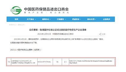 近日,作為博奧晶典抗疫明星產(chǎn)品,新型冠狀病毒2019-nCoV核酸檢測(cè)試劑盒(全集成碟式芯片法)英文名稱:SARS-CoV-2 Nucleic Acid Detection Kit (Integrated Isothermal Amplification Chip Method)入選商務(wù)部出口白名單。同期,博奧晶典全集成新冠病毒核酸檢測(cè)芯片也在中國(guó)醫(yī)藥保健品進(jìn)出口商會(huì)官網(wǎng)公布的《取得國(guó)外標(biāo)準(zhǔn)認(rèn)證或注冊(cè)的醫(yī)療物資生產(chǎn)企業(yè)清單》(俗稱白名單)中亮相。在全球疫情持續(xù)重壓、變異新毒株奧密克戎(Omicron)極速蔓延的當(dāng)下,全集成新冠病毒核酸檢測(cè)芯片的加入,有效支持了國(guó)際社會(huì)共同應(yīng)對(duì)全球公共危機(jī),博奧晶典也將持續(xù)助力全球新冠肺炎疫情防控工作,為公眾健康保駕護(hù)航。
