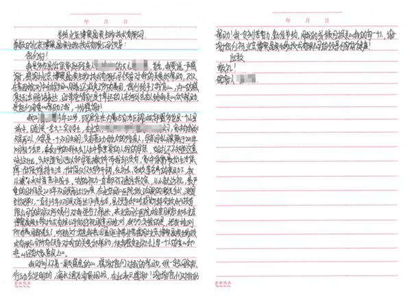 報告解讀后小女孩也給我們寄來了感謝信,感謝博奧給予的關(guān)愛和幫助。