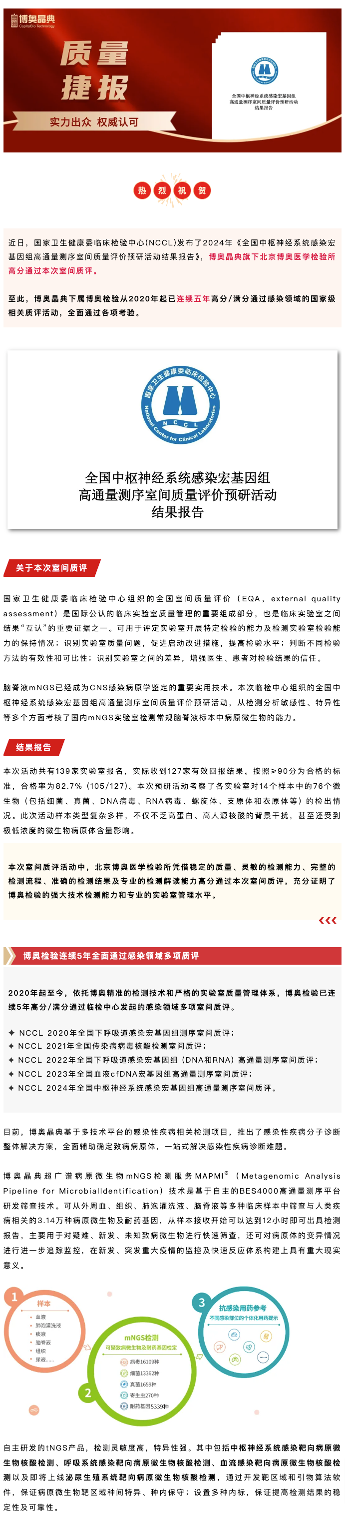 捷報(bào)丨全國(guó)中樞神經(jīng)系統(tǒng)感染mNGS室間質(zhì)評(píng)結(jié)果發(fā)布,博奧檢驗(yàn)連續(xù)5年全面通過感染領(lǐng)域多項(xiàng)質(zhì)評(píng)