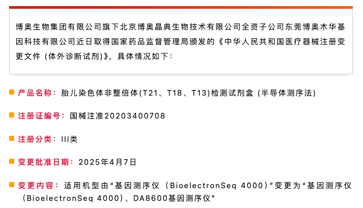 喜訊丨博奧NIPT試劑盒適用機型拓項資質(zhì)審批通過!
