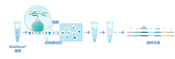 MobiNova®高通量單細胞轉(zhuǎn)錄組解決方案采用液滴式微流控芯片技術(shù),利用微球-分子標簽(barcode)進行單細胞識別,在微流控系統(tǒng)中生成穩(wěn)定的油包水。接下來在每個油滴內(nèi),細胞裂解釋放mRNA,被微球上的分子標簽捕獲,通過逆轉(zhuǎn)錄獲得帶條形碼的 cDNA。將cDNA 回收擴增后進行文庫構(gòu)建、測序,即可一次性獲得500-20000個單細胞的基因表達數(shù)據(jù),從而實現(xiàn)在單細胞水平進行表達測序的目的。可為科學(xué)研究、疾病診斷和藥物開發(fā)等領(lǐng)域提供精度高、通量大、速度快、體積小的高性價比研究工具。